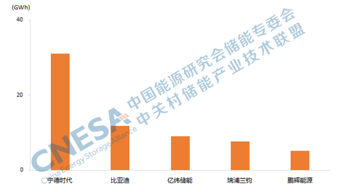 储能电池出货量前五:宁德时代、比亚迪、亿纬锂能、瑞浦兰钧、鹏辉能源
